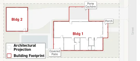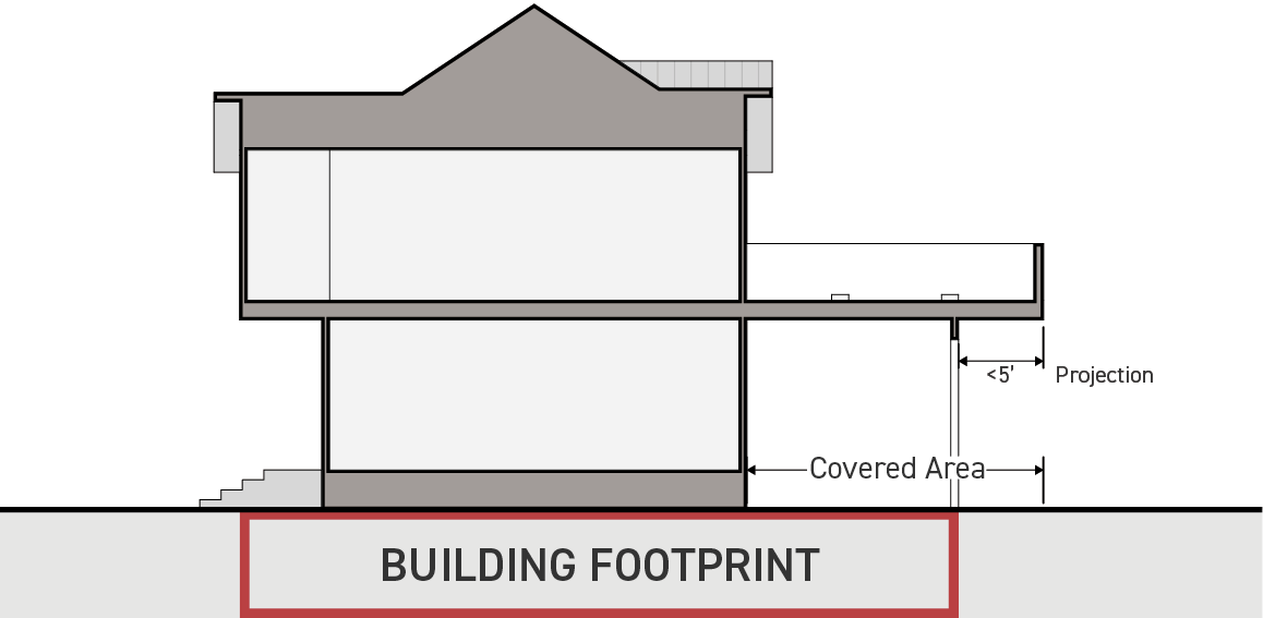 Building footprint does not include portions of a lot covered by architectural projections (including roof overhangs, and projecting balcony) that meet both of the following criteria: