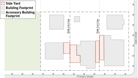 Yard: Yard is defined as all portions of a lot between exterior walls of a building and a property line. See Sec.14.2.16. (Yards).